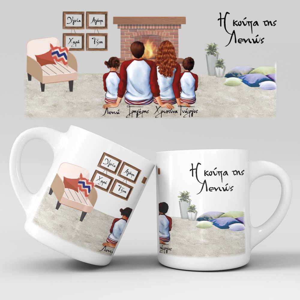 Κούπα 350ml με το μήνυμα που επιθυμείτε. To σχέδιο είναι σύνθεση με όσα μέλη θέλετε και κατά προσέγγιση το στυλ μαλλιών.