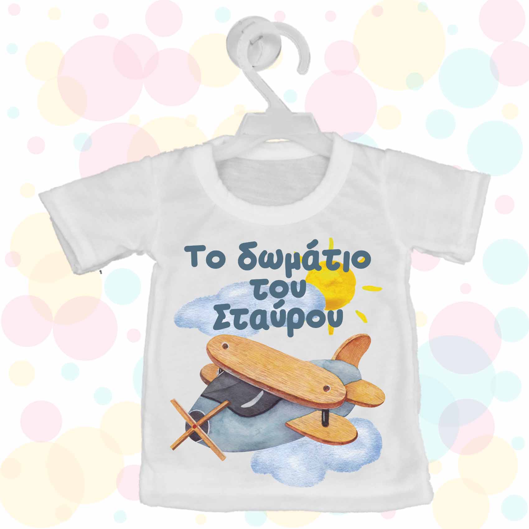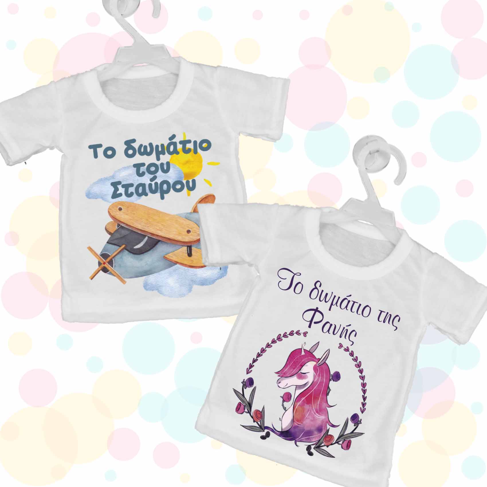 Mini t-shirt με κρεμάστρα και βεντούζα για διακοσμητικό δωματίου με τη θεματολογία που επιθυμείτε.